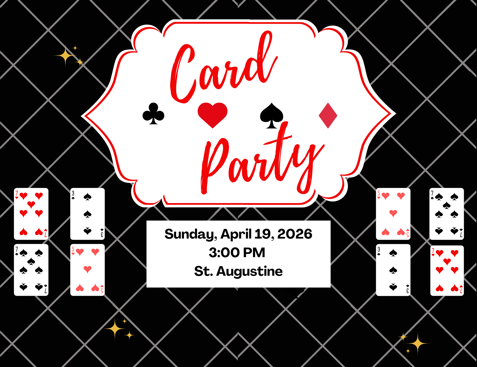 Our April Card party will be held on Sunday, April 19th at 3:00 pm at St. Augustine’s. This is the last card party until October. We had a great turnout for the March card party! Everyone had a great time,…